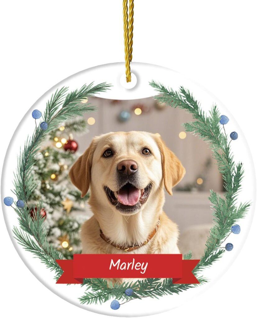 📸 3. Personalized Christmas Ornament 2025 – Custom Dog Photo