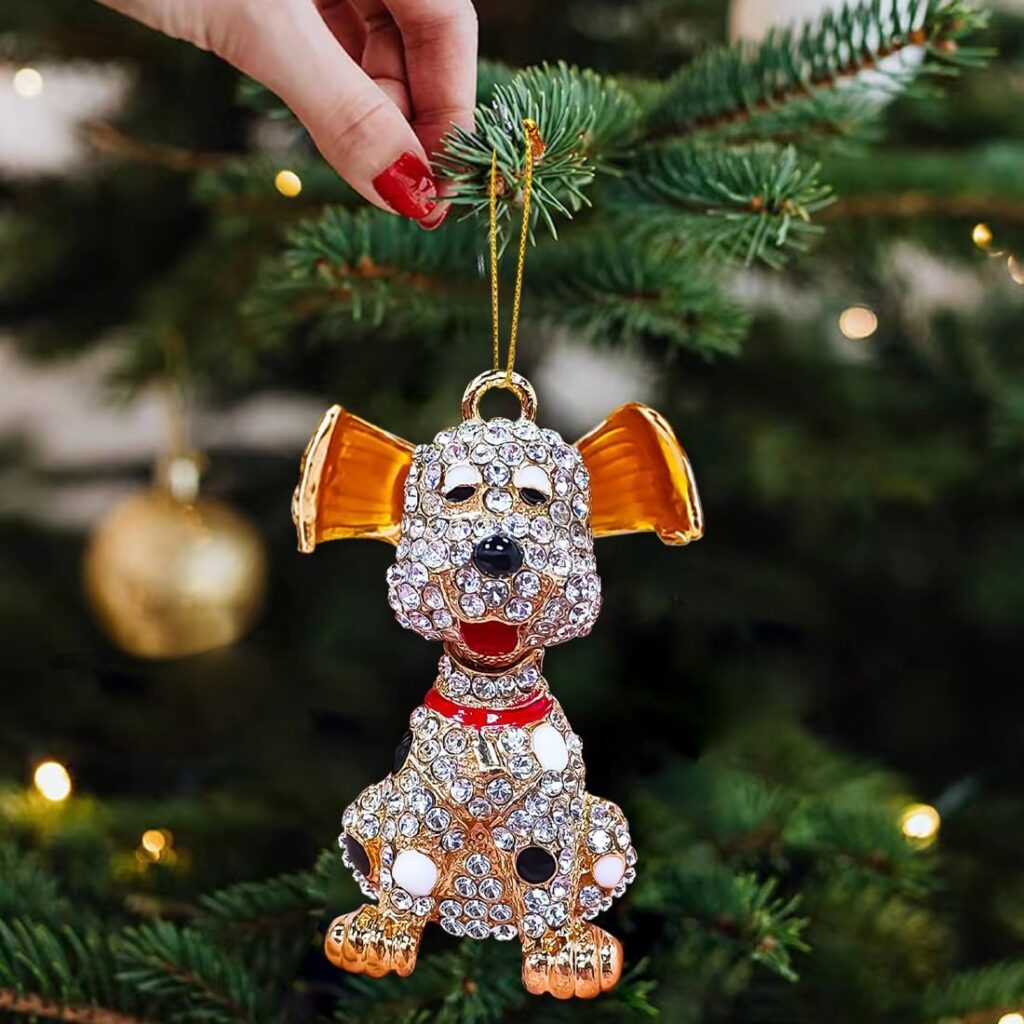 🐶 1. Dog Ornaments for Christmas Tree – Handmade Metallic Ornament with Rhinestone