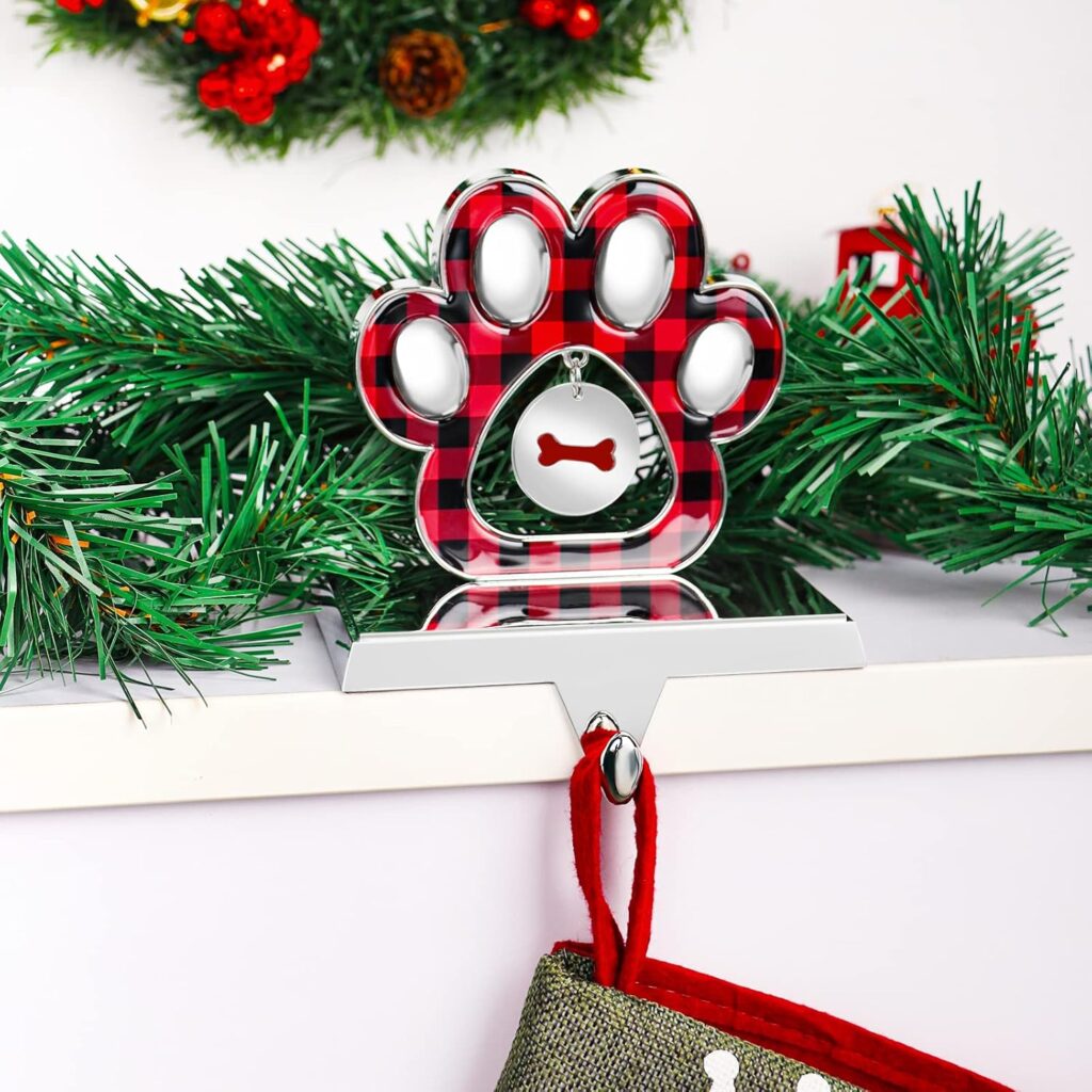 🎁 2. Dog Paw Christmas Stocking Holder with Dog Bone Pendant
